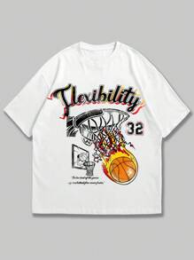 Prep Männer T-Shirt mit Basketball & Buchstabe Grafik,