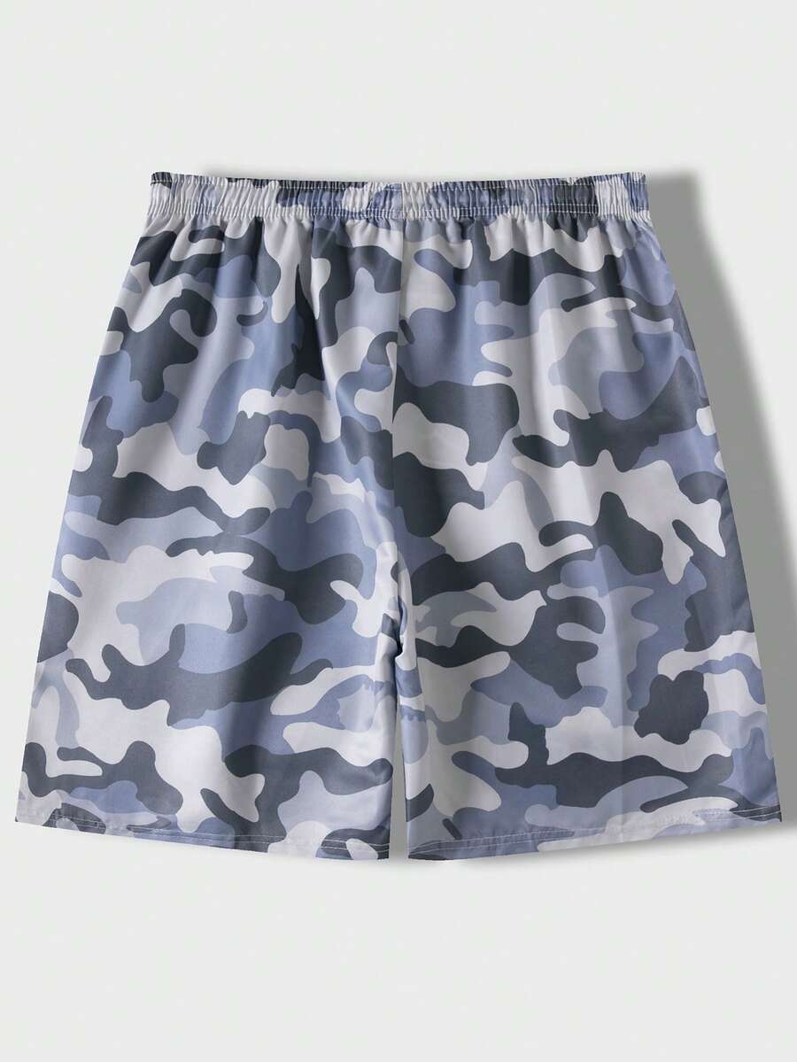 Prep Männer Shorts mit Tarnfarben & Buchstaben Grafik, Tunnelzug,