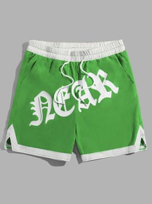Prep Männer Shorts mit Buchstaben Grafik, Tunnelzug, Kontrast Saum,