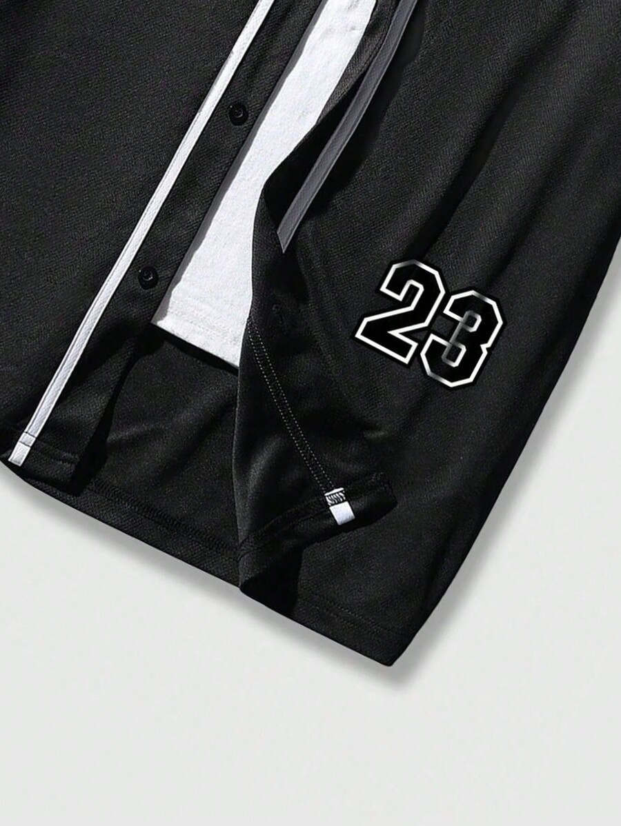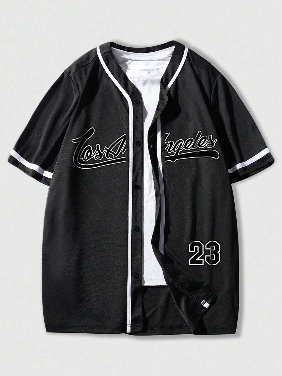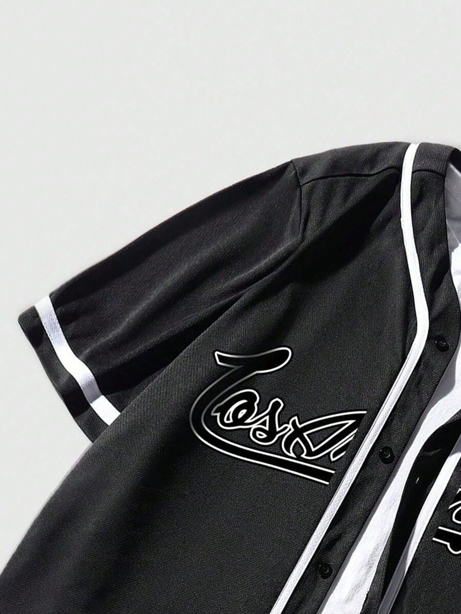 Prep Herren Hemd mit Buchstaben Grafik und Knopfleiste, ohne T-Shirt, Schule