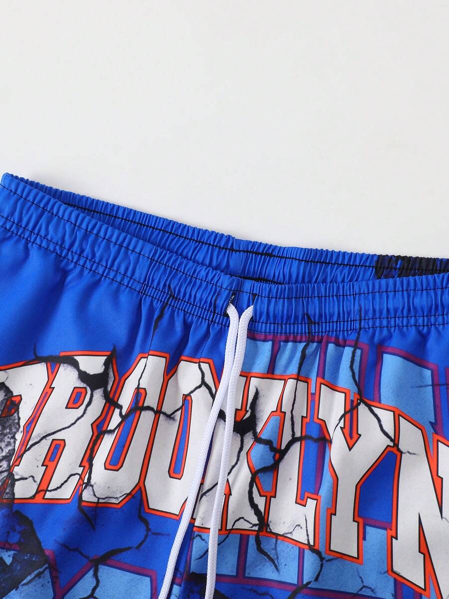 Prep Herren Shorts mit Buchstaben-Grafik und Kordelzug am Bund