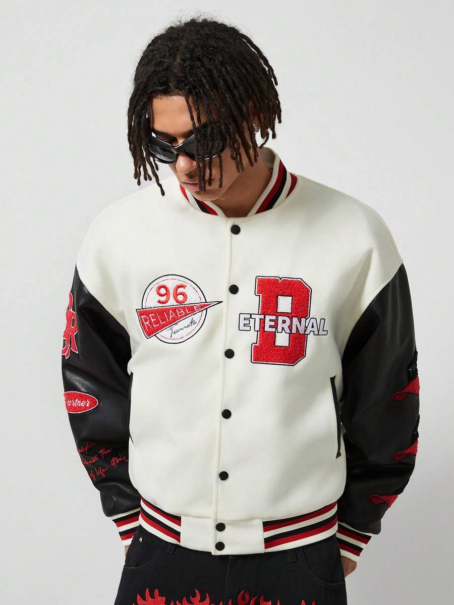 Prep Herren Kontrast Farbblock Baseball Jacke mit Stickerei-Buchstaben