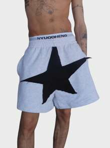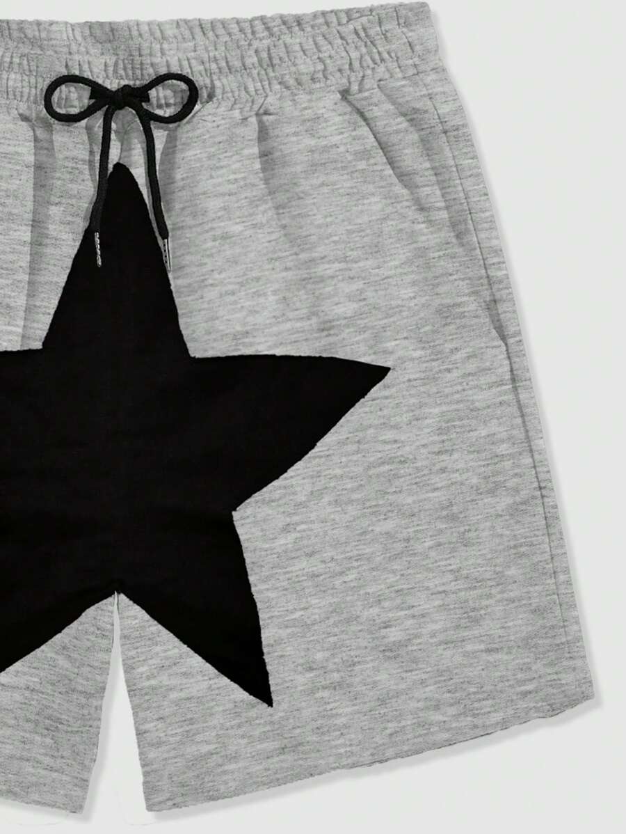 Prep Herren Shorts mit Tunnelzug in der Taille, Fünf-Zacken-Stern Muster und Taschen, Lässig