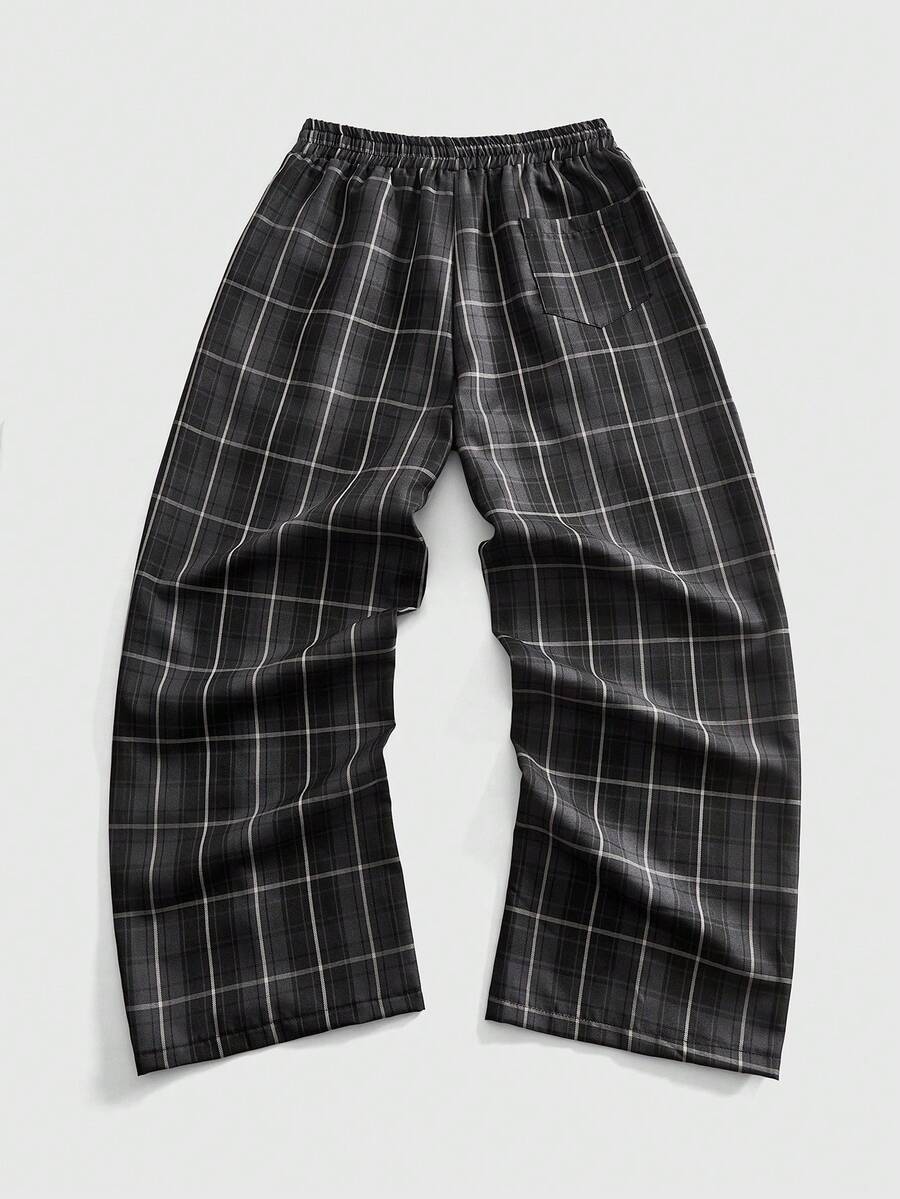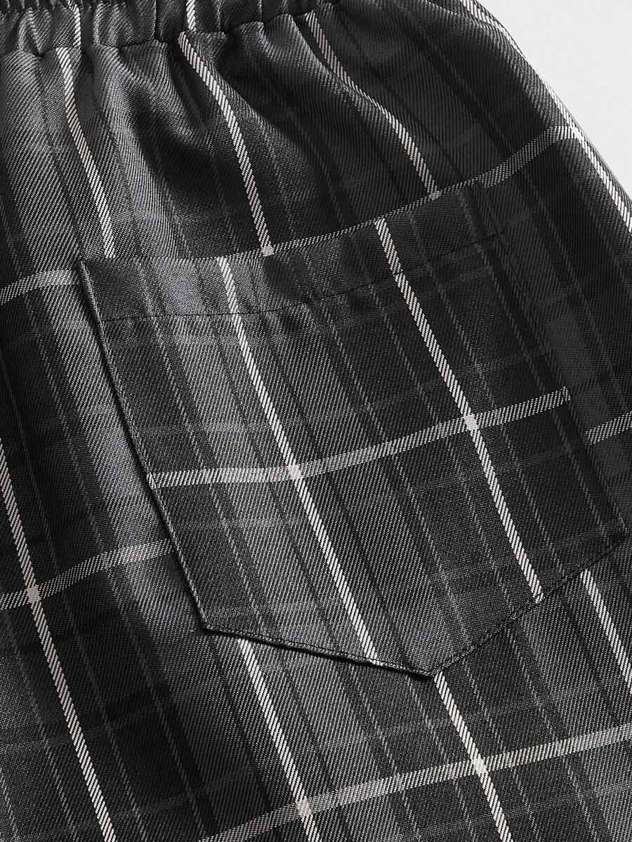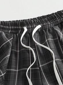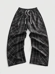 Prep Herren Lässig Hose mit Kordelzug, Taschen und locker geschnittenem Karomuster, College-Stil