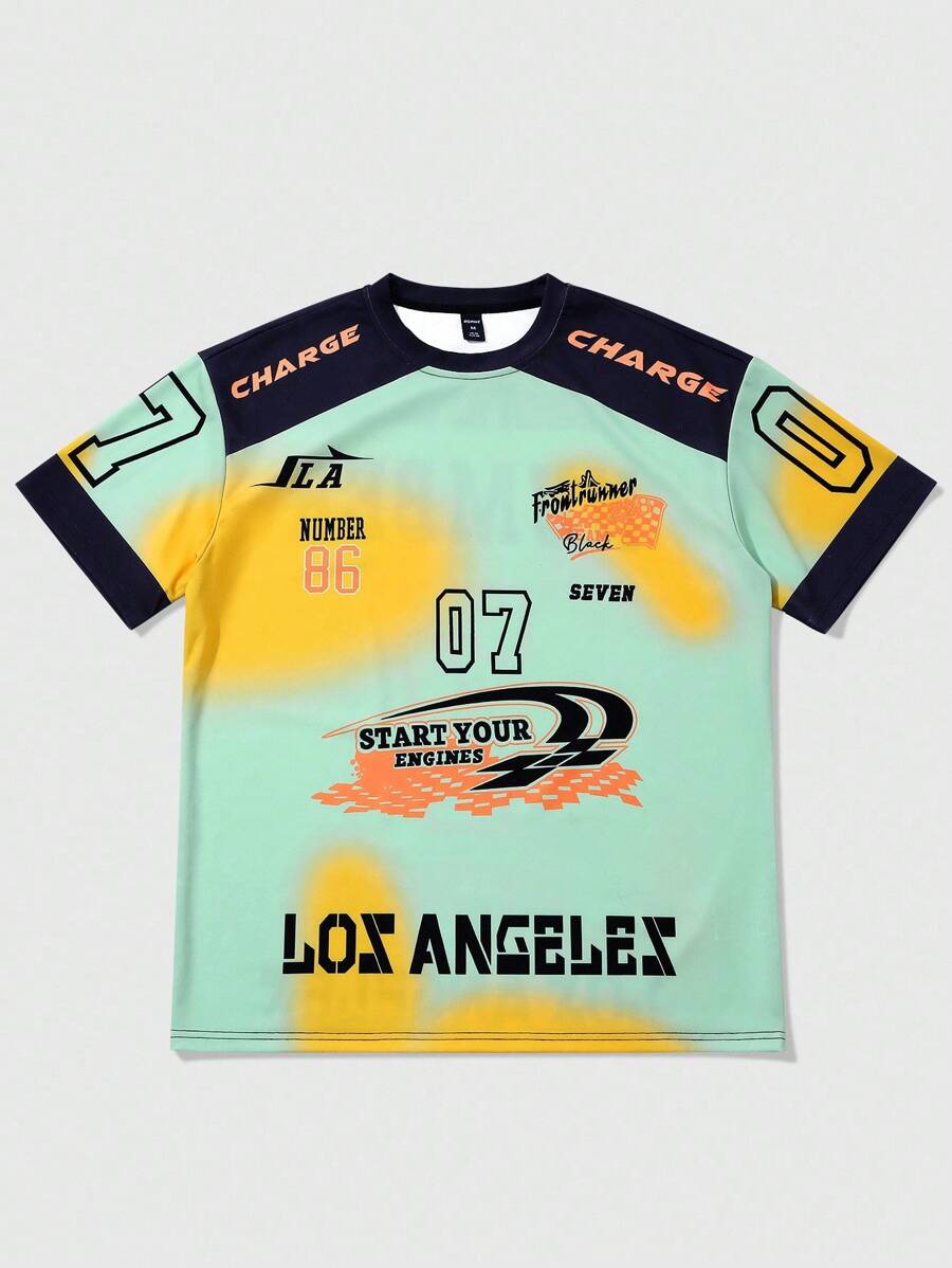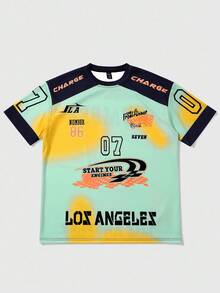Prep Modisches bedrucktes Herren-T-Shirt mit Rundhalsausschnitt und kurzen Ärmeln, Jersey