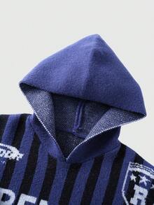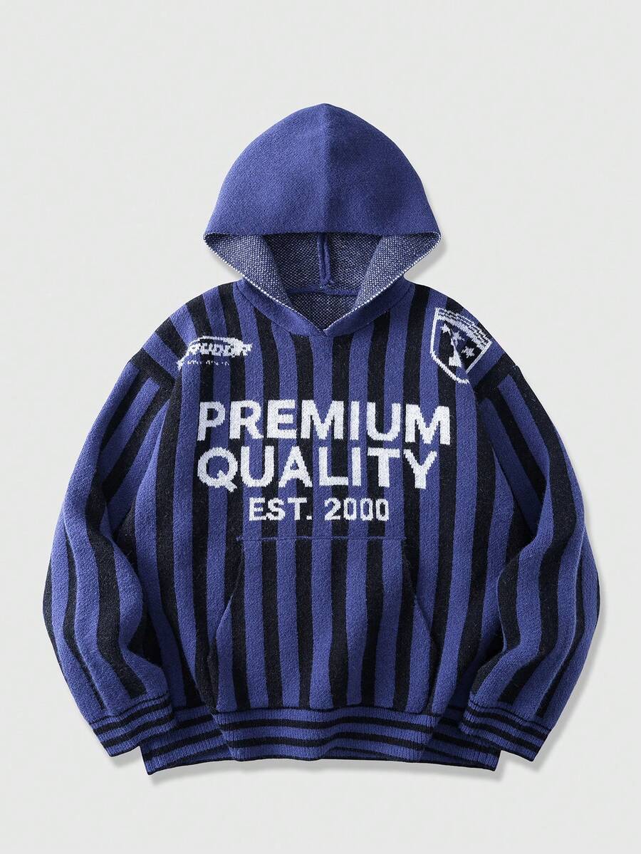 Prep Herren Buchstaben Jacquard gestreifter Langarm Lässig Hoodie Pullover, Herbst/Winter