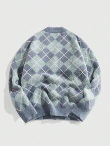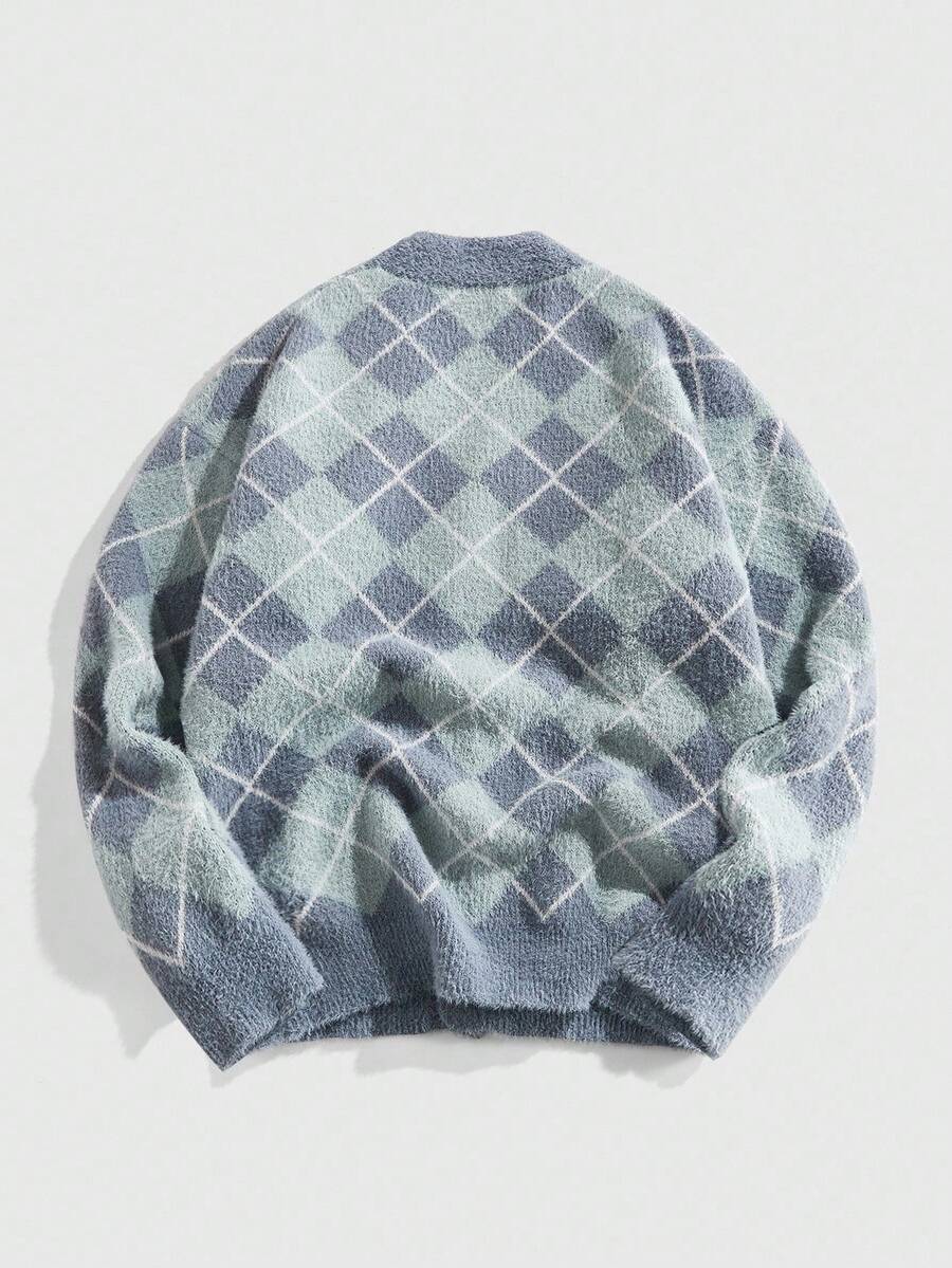 Prep Herren Rhombus Muster Langarm Einreiher Lässig Strickjacke, Herbst/Winter