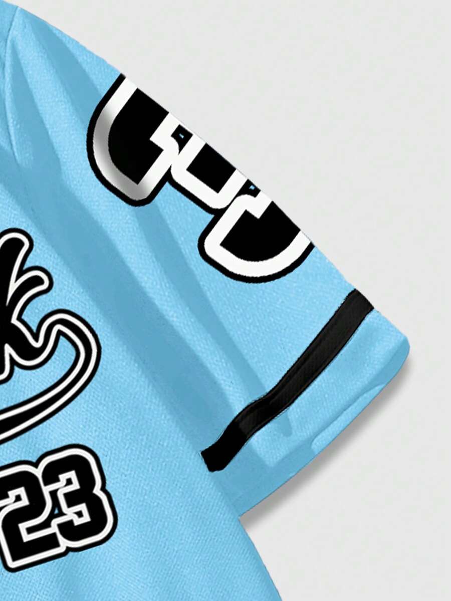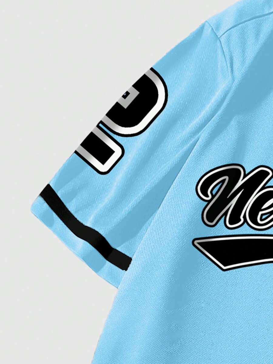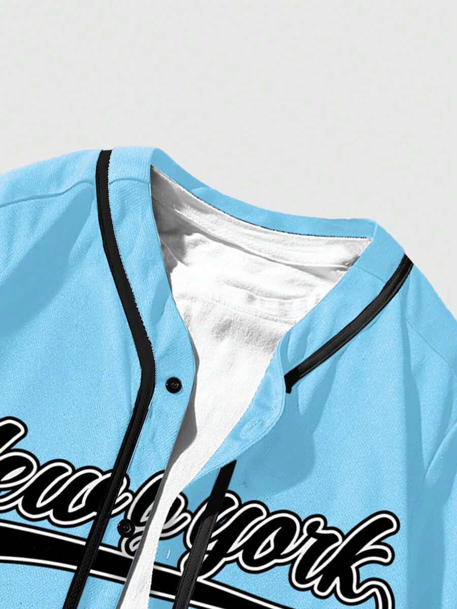 Prep Herren Einreihiges lässiges City-Logo bedrucktes Kurzarm Hemd