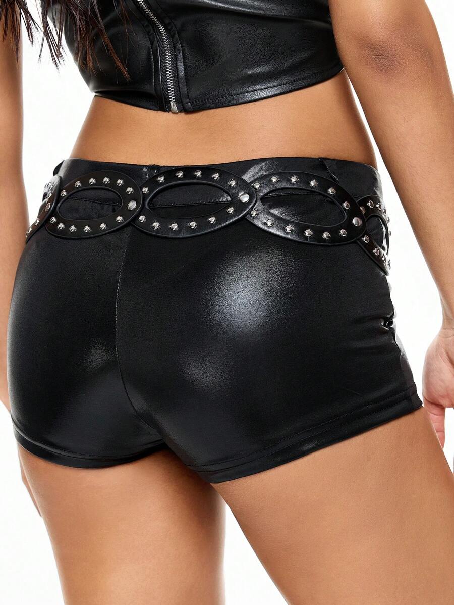 ROMWE Avant 1 Stück Damen Schwarzer Metallgürtel mit Cut Out ovalen Pilzkopf-Schnallen-Dekor, geeignet für Kleider, Jeans, Shorts, Alltagskleidung, Goth-Stil