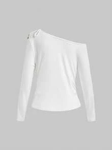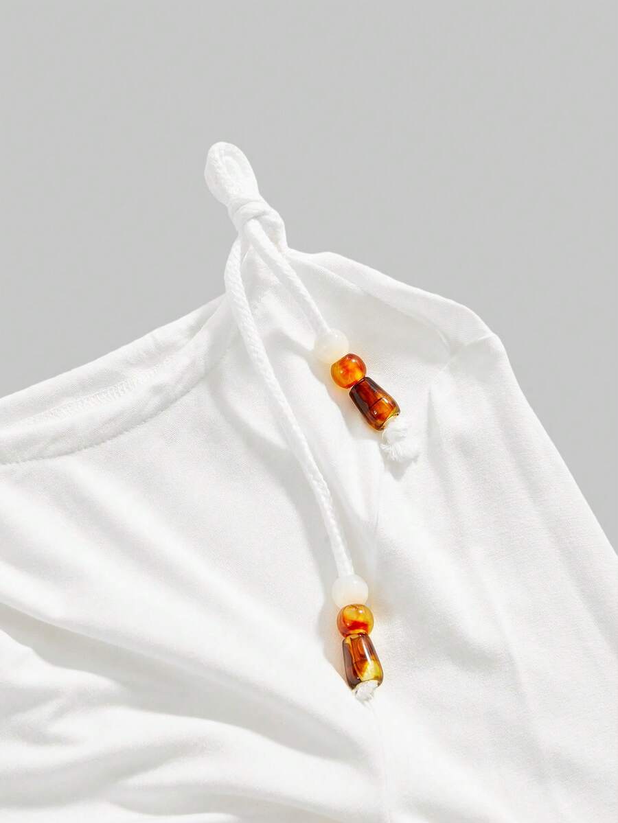ROMWE Avant Locker sitzende Frauen Bluse mit Perlenbesatz und Rundhalsausschnitt