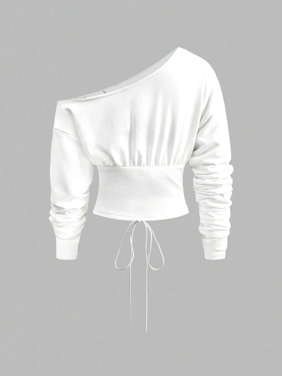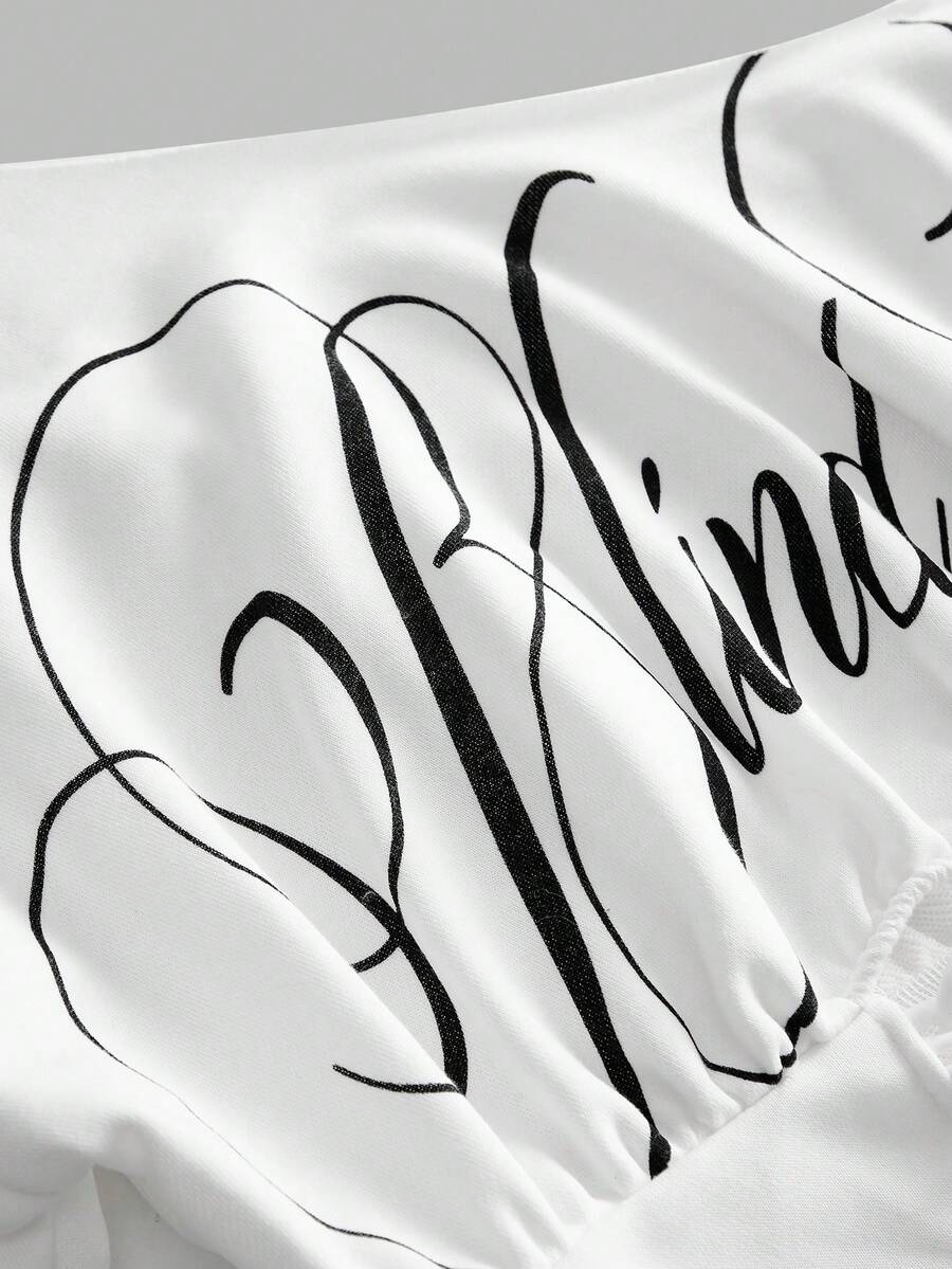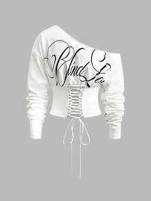 ROMWE Avant Lässiger Streetwear Grafik Schräg Schulter Kurz Loose Sweatshirt