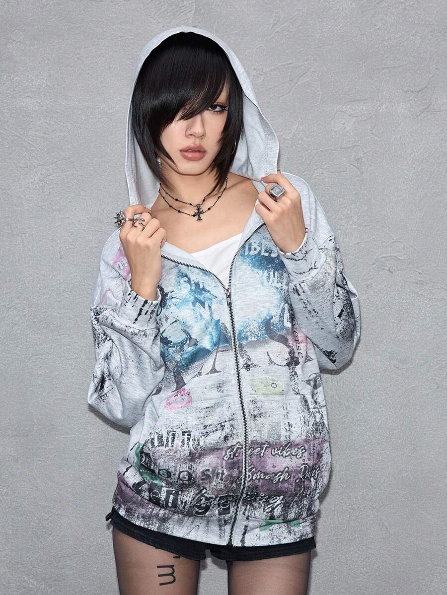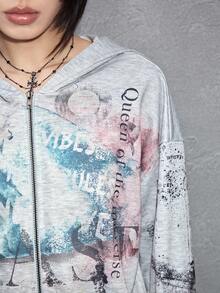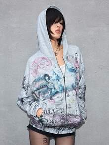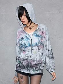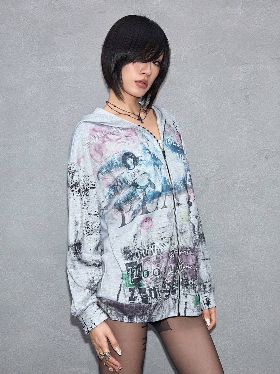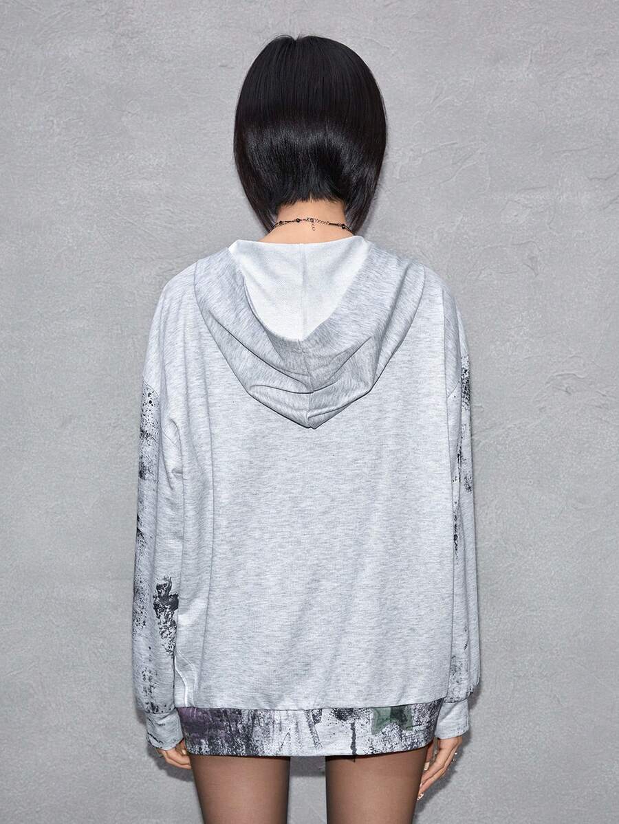 ROMWE Avant Modischer avantgardistischer Figurenszenen-Text-Slogan Patchwork-Muster locker-lässiger Sweatshirt