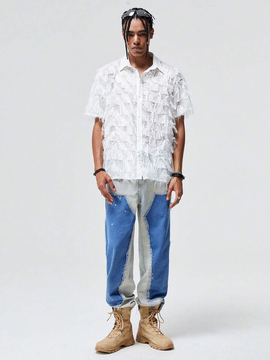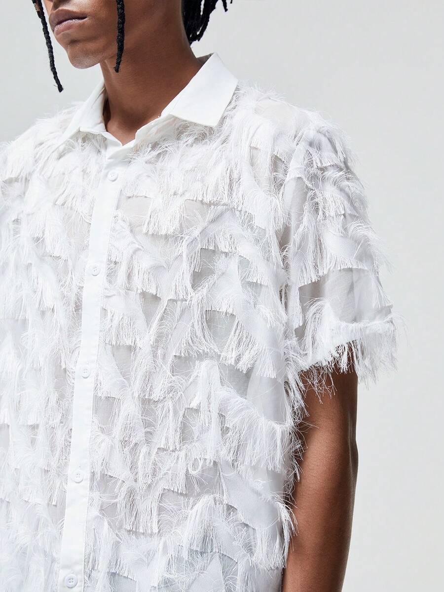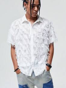 ROMWE Avant Männer Shirt mit Quasten Saum, Knopf
