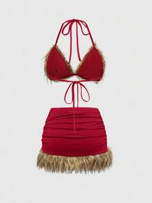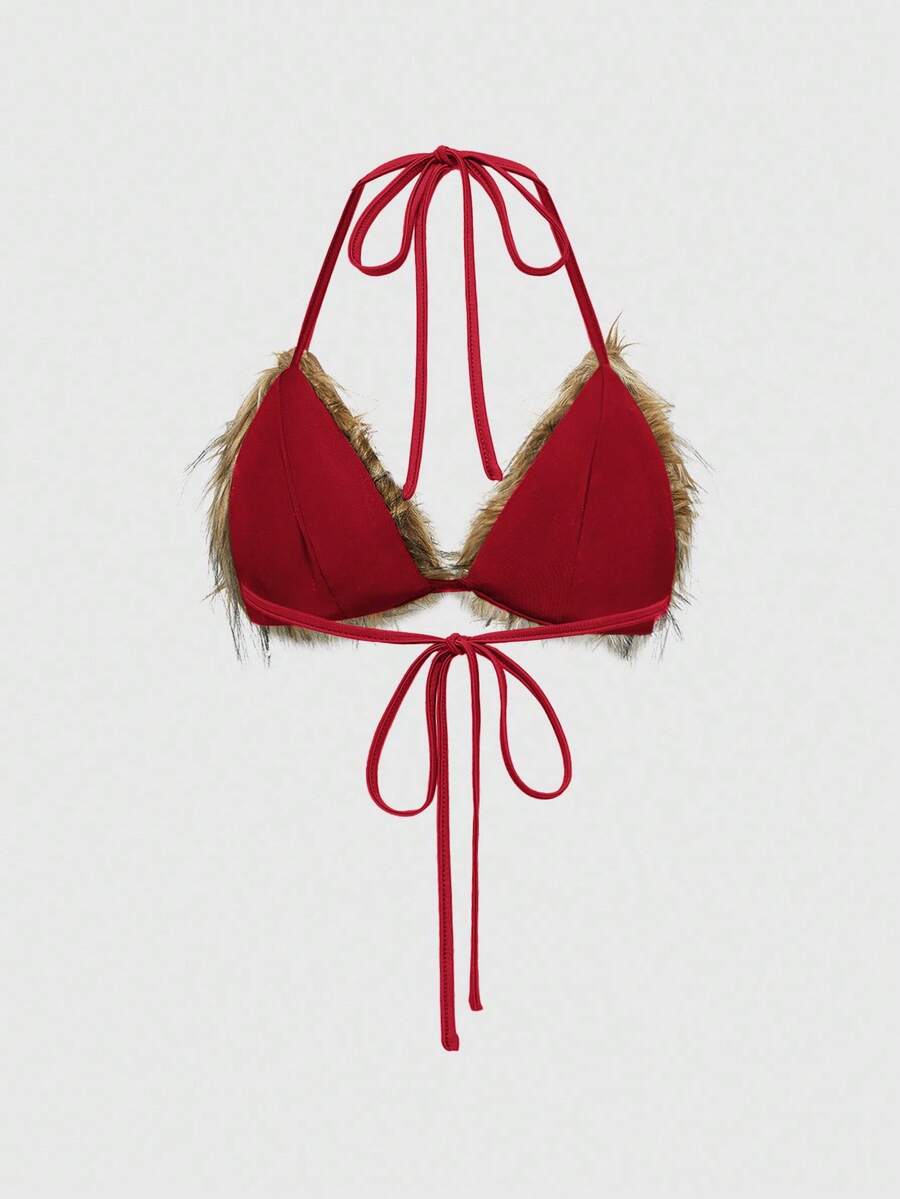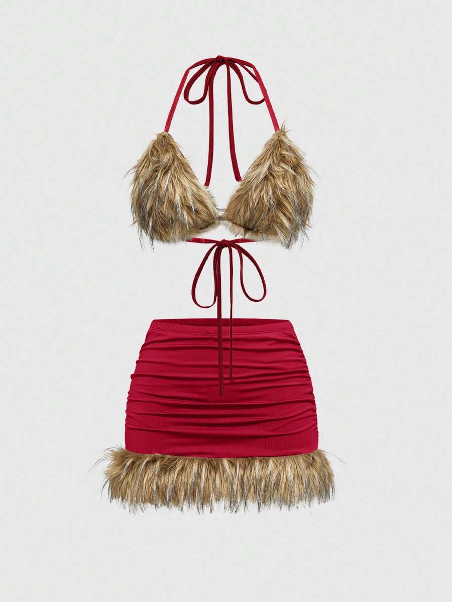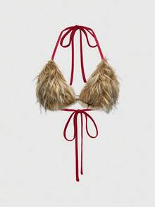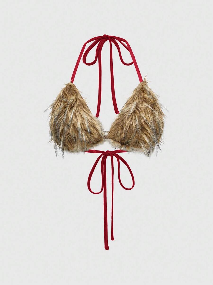 ROMWE Avant Hippie Chic Flauschiges Dreieck-Cup Super Tief Taillierter Bund Frauen 2 Stücke Set