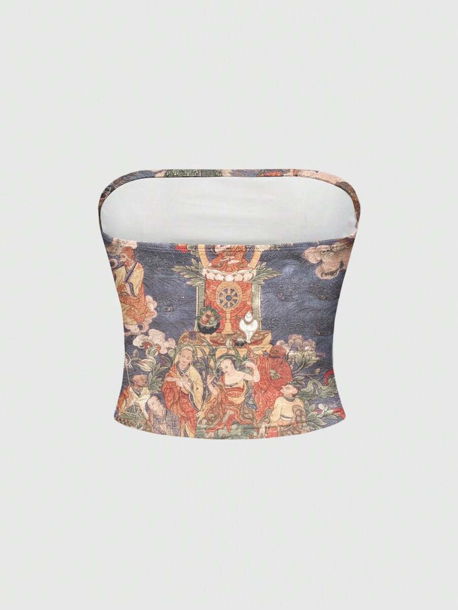 ROMWE Avant Neuer chinesischer Stil buddhistisches religiöses Wandgemälde Muster Muster Frauen Röhrentop