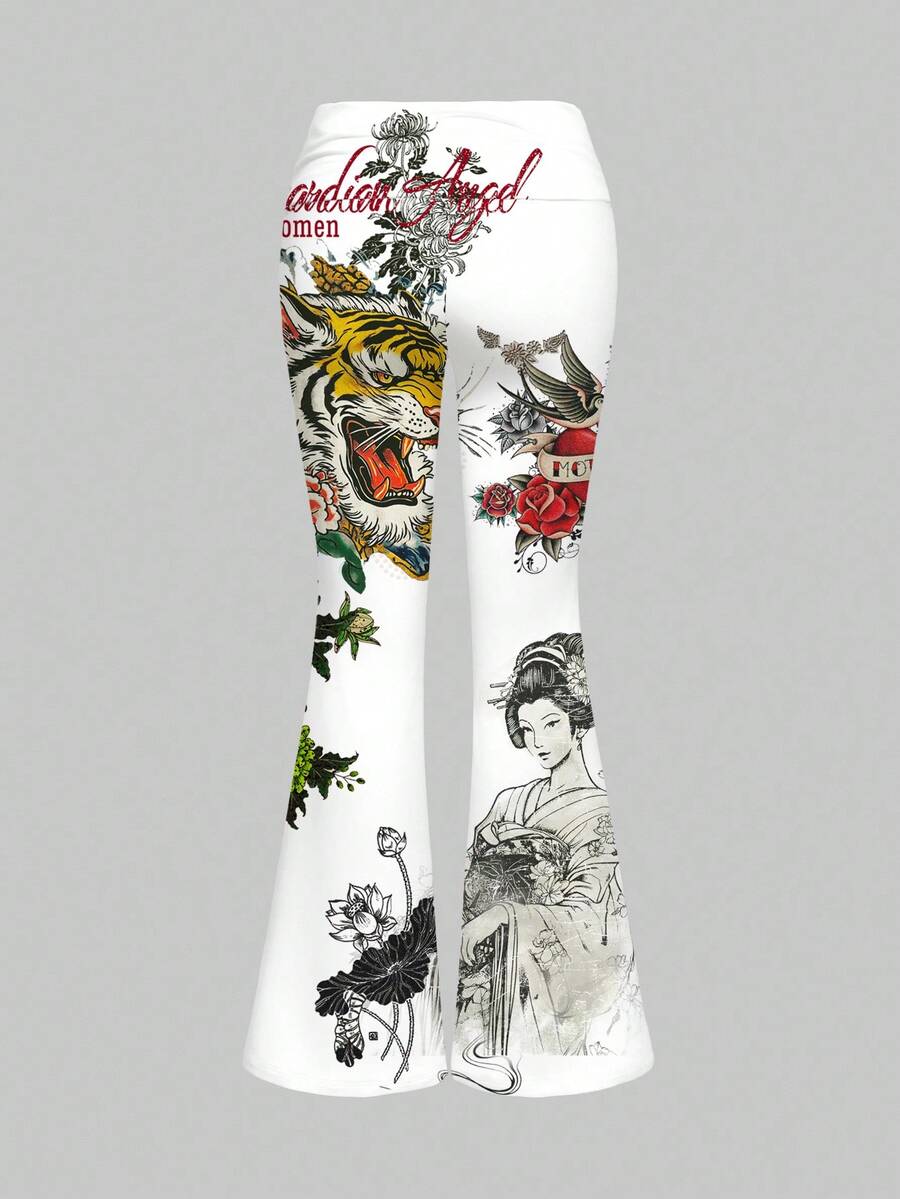 ROMWE Avant Sexy Slogan Crop Top & Weite Hose mit niedriger Taille 2-teiliges Set für Frauen
