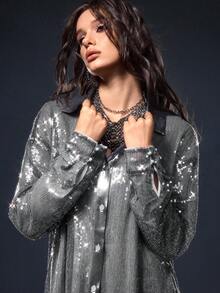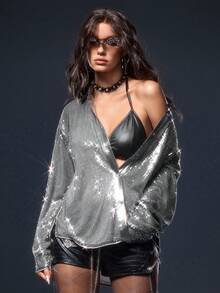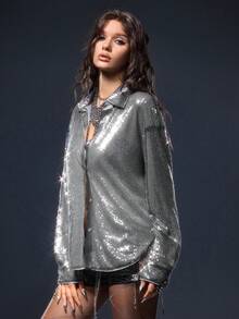 ROMWE Avant Transparentes Pailletten Loose Damen Hemd, Silvester Party