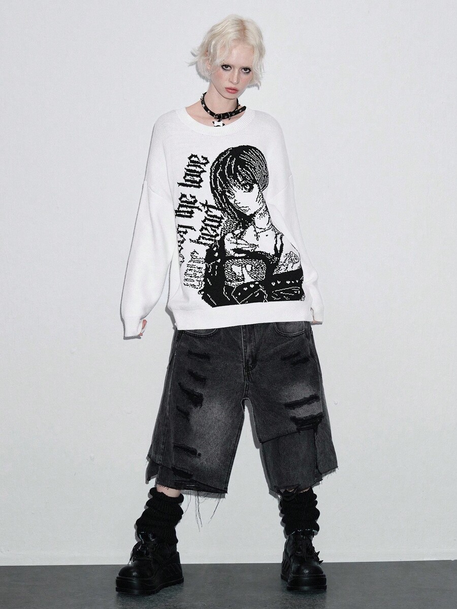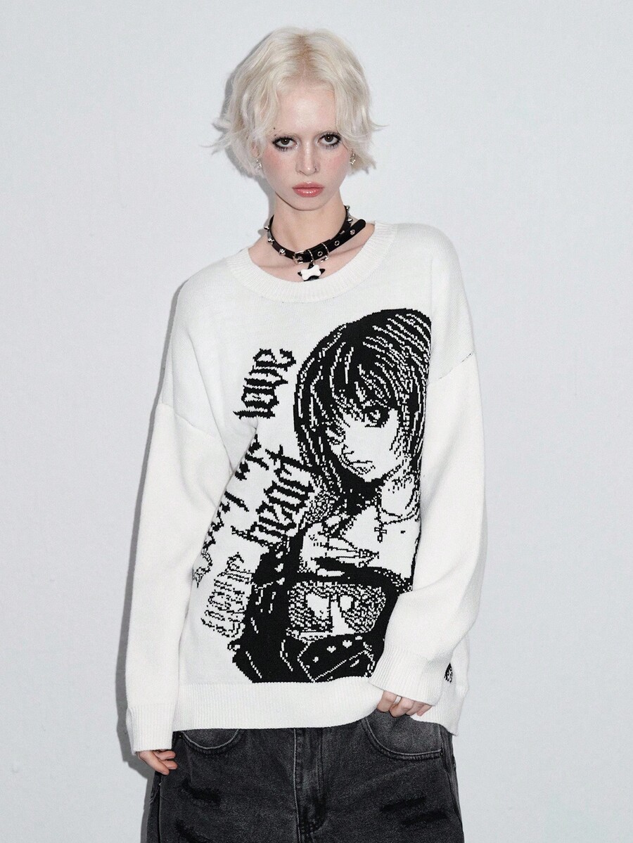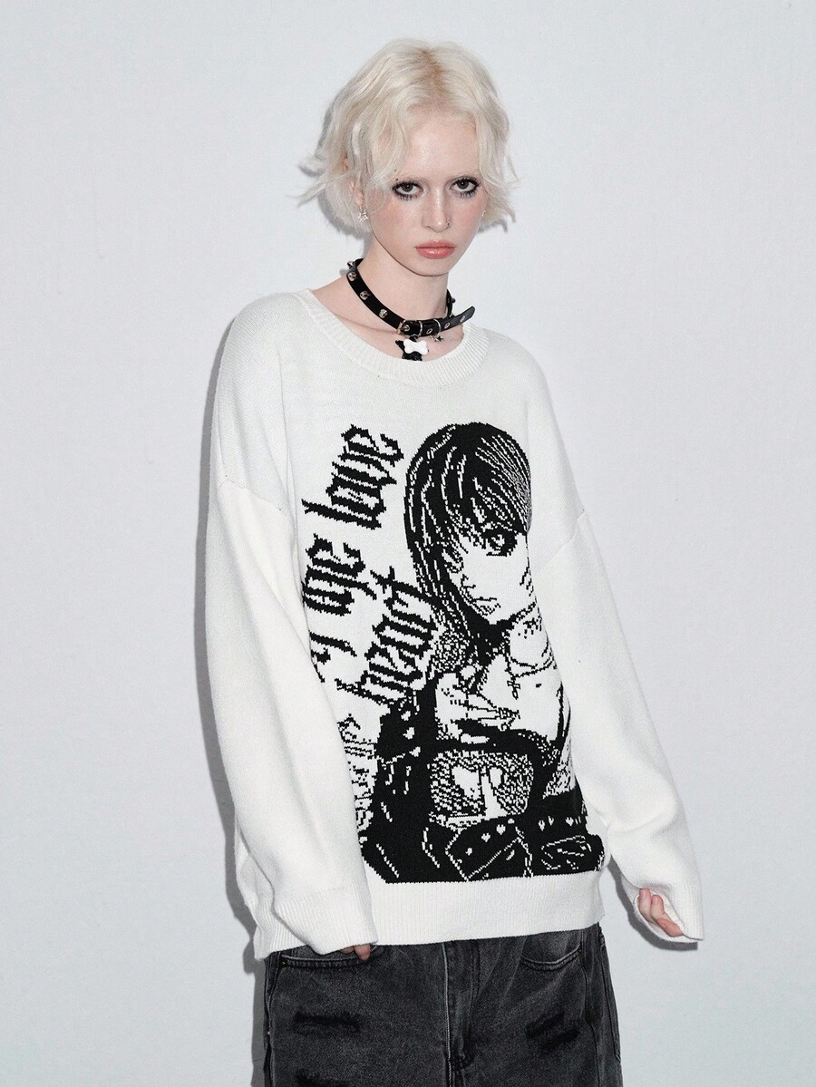 ROMWE Avant Unisex Y2K Cartoon Jacquard Pullover