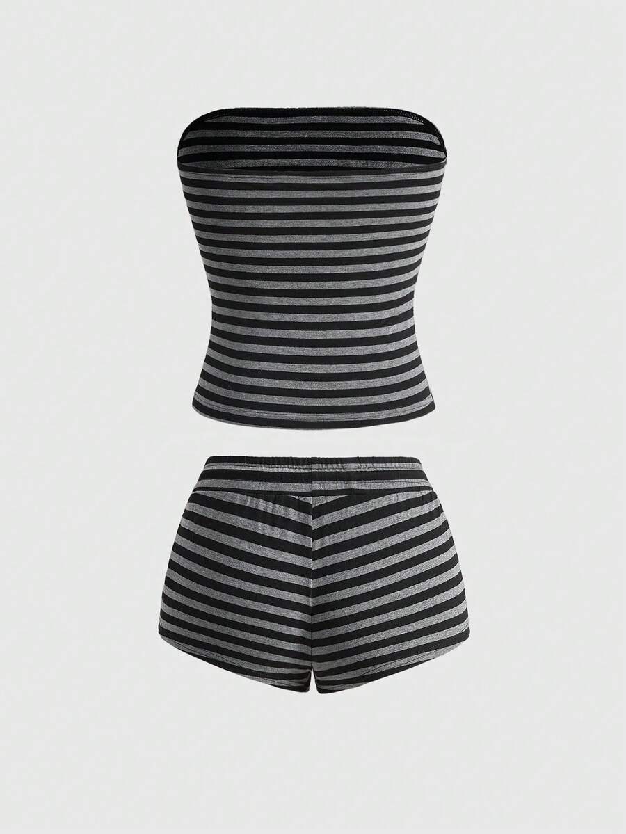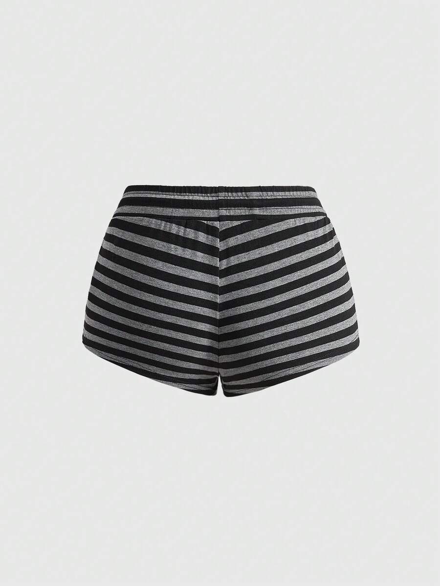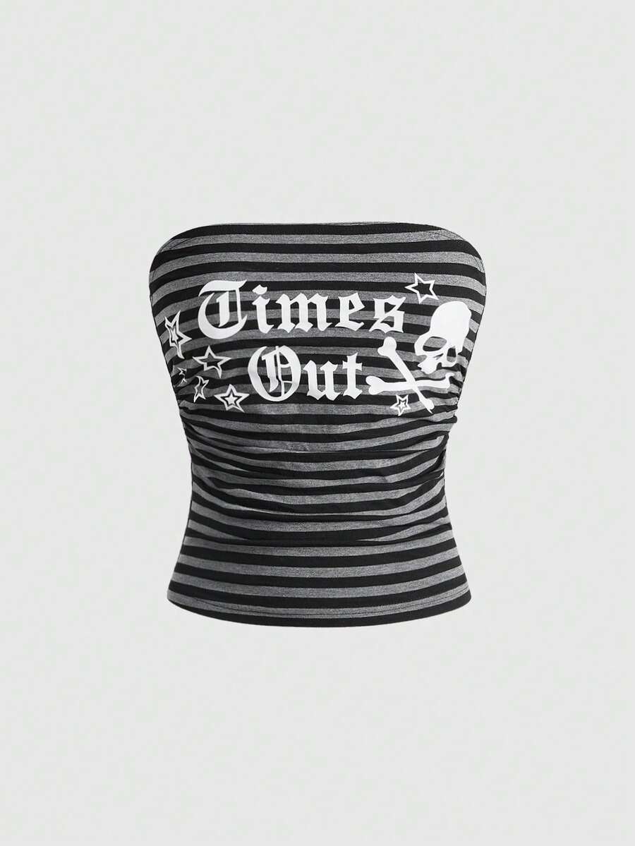 ROMWE Avant Damen Retro Y2K Baddie Slogan Totenkopf Muster gestreiftes Crop Top und super tief sitzende Mini Shorts 2-teiliges Set