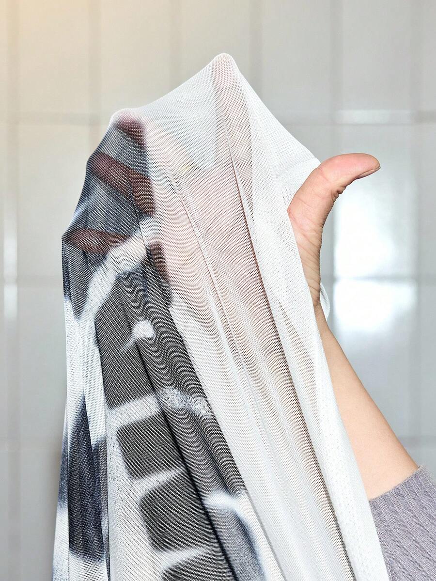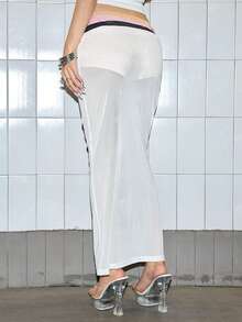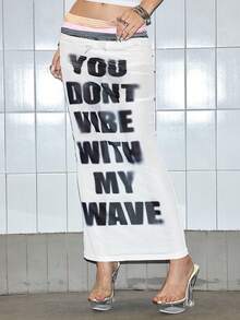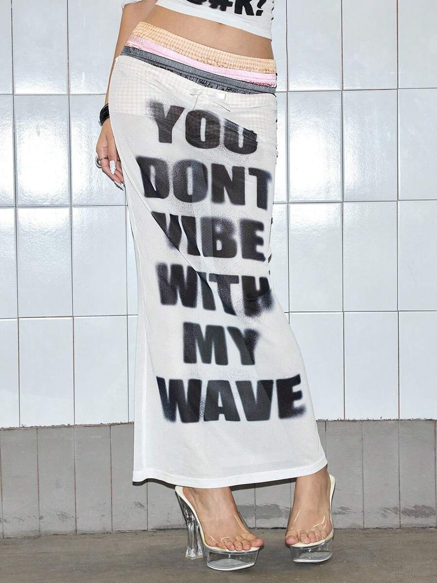 ROMWE Avant Damen Slogan Muster Patchwork Karomuster Mehrschichtige Taillenbandgestaltung Mesh transparenter Bleistiftrock
