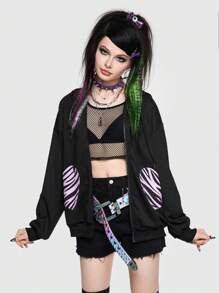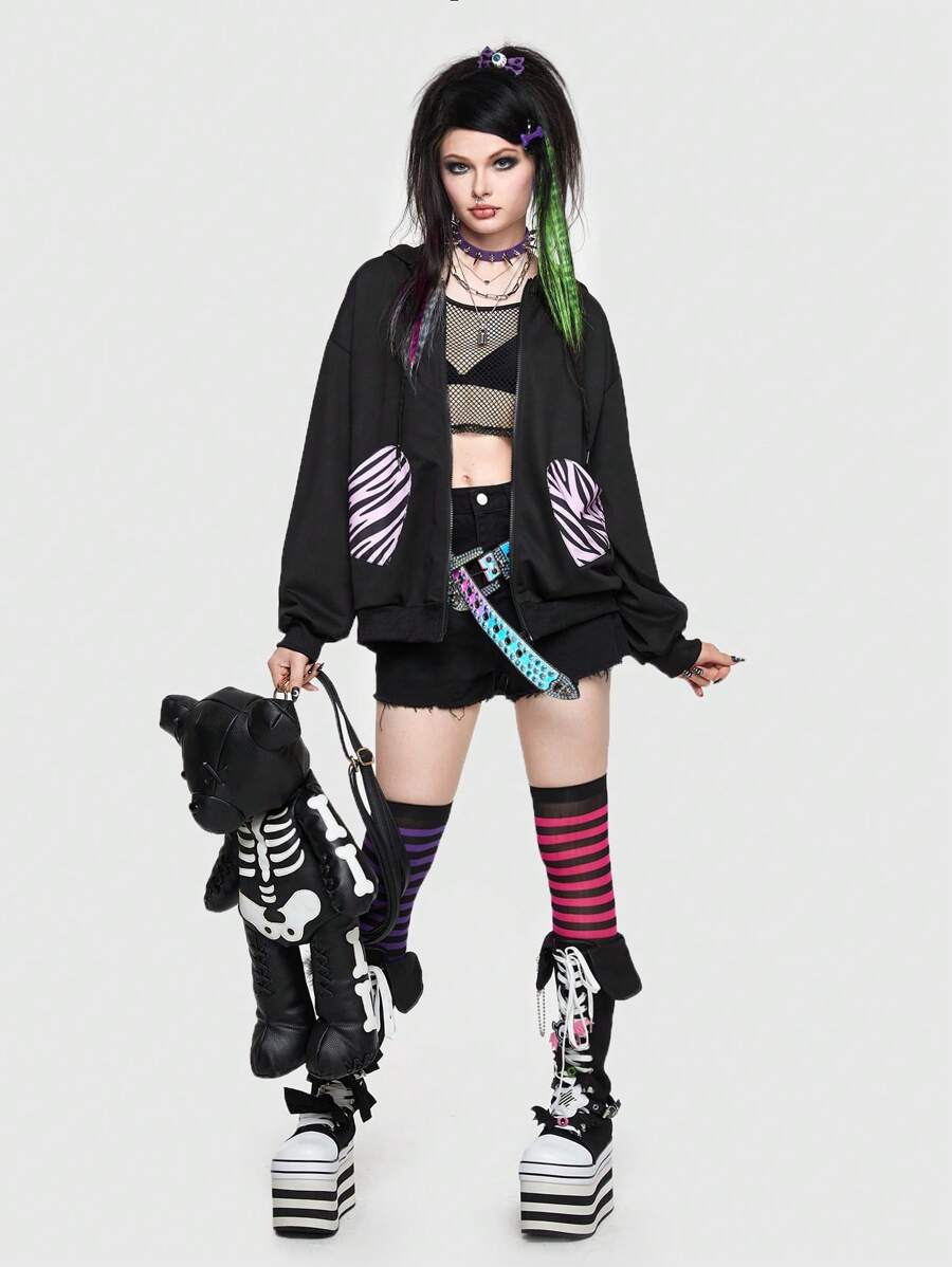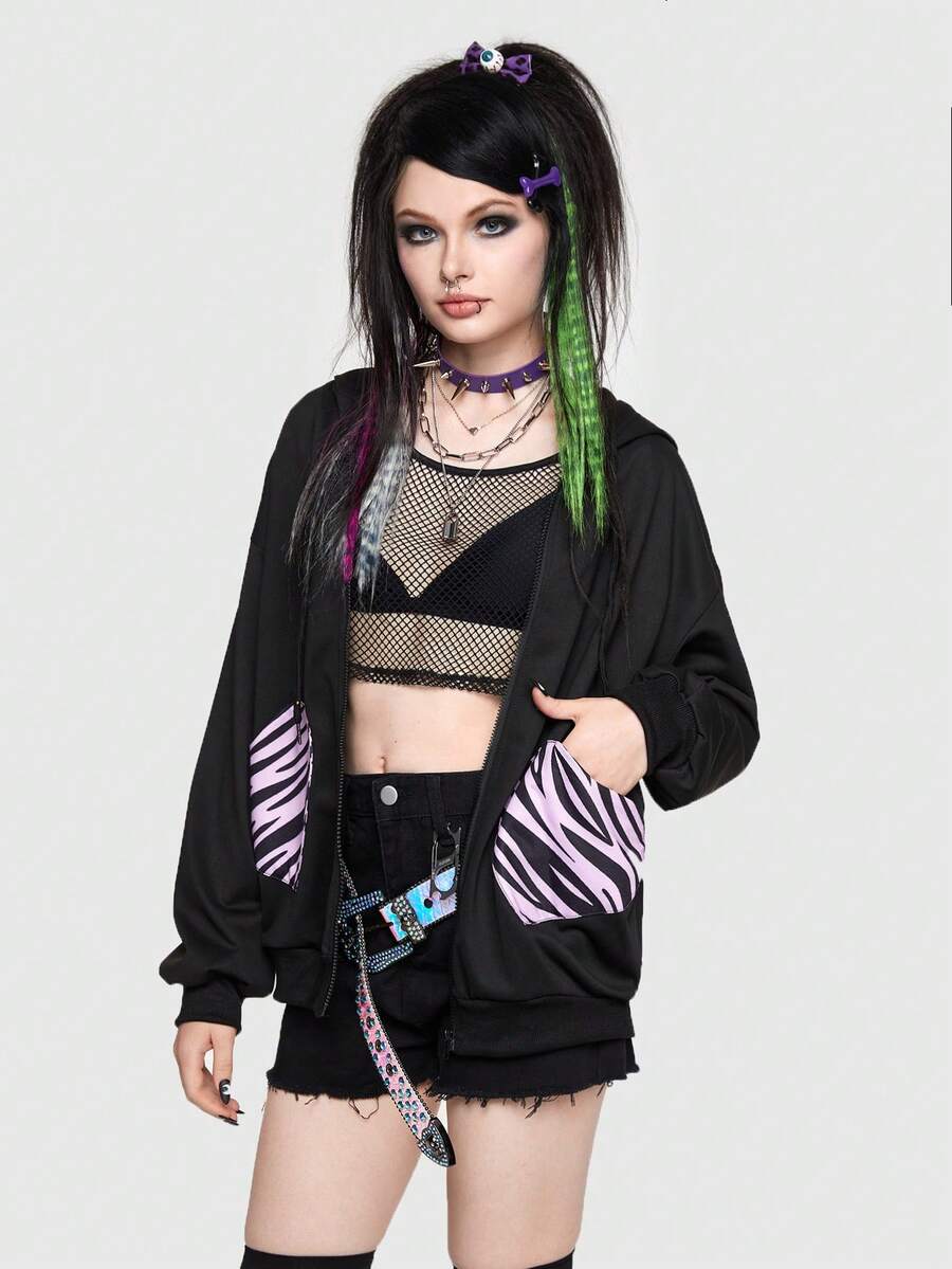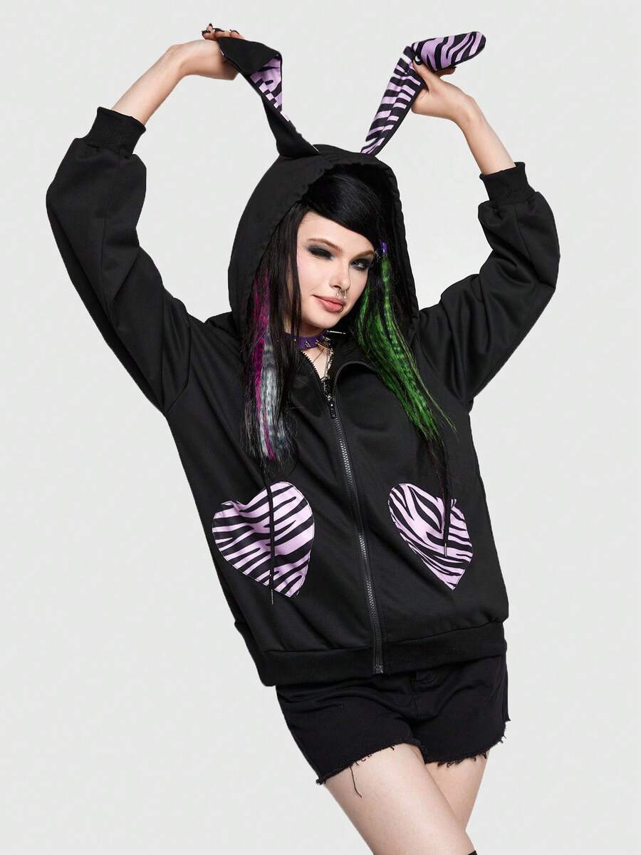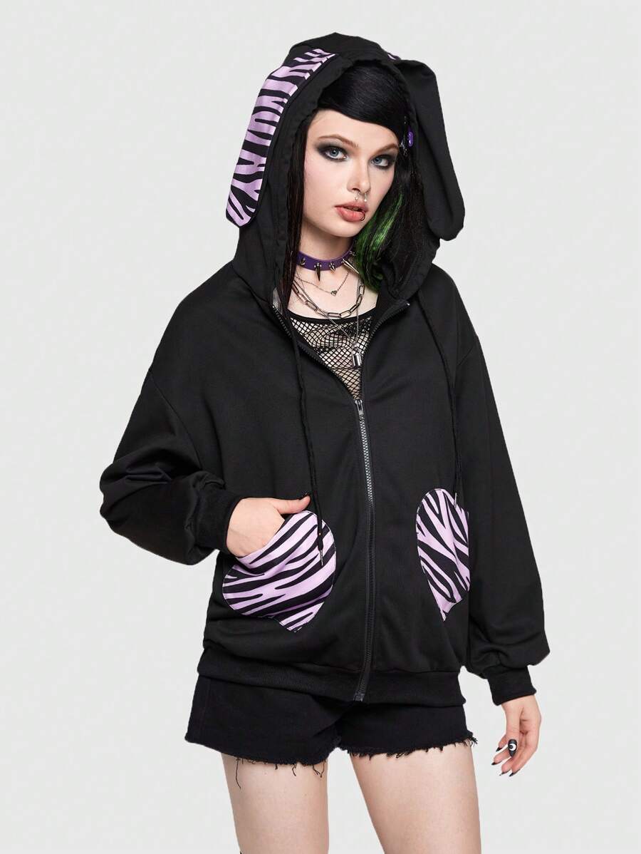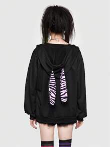 ROMWE Avant Hoodie mit Zebra Streifen Reißverschluss, Drop Shoulder