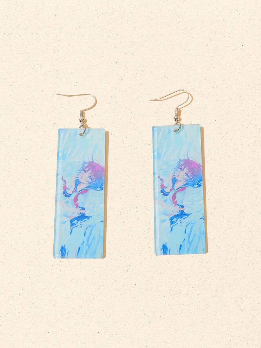 Angelfish Anime Ohrringe mit Figur Grafik, Rechteck