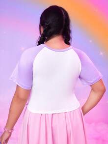 ROMWE X Care Bears T-Shirt mit Cartoon Grafik, Raglanärmeln,
