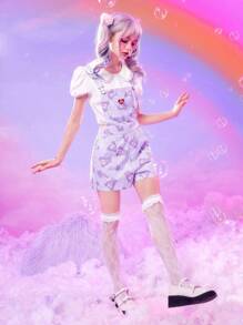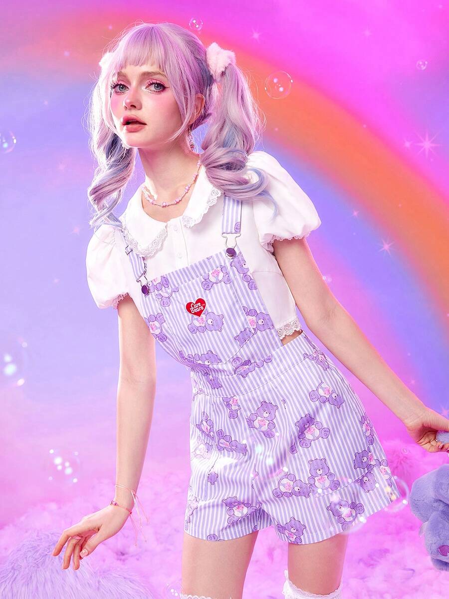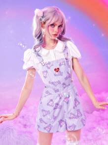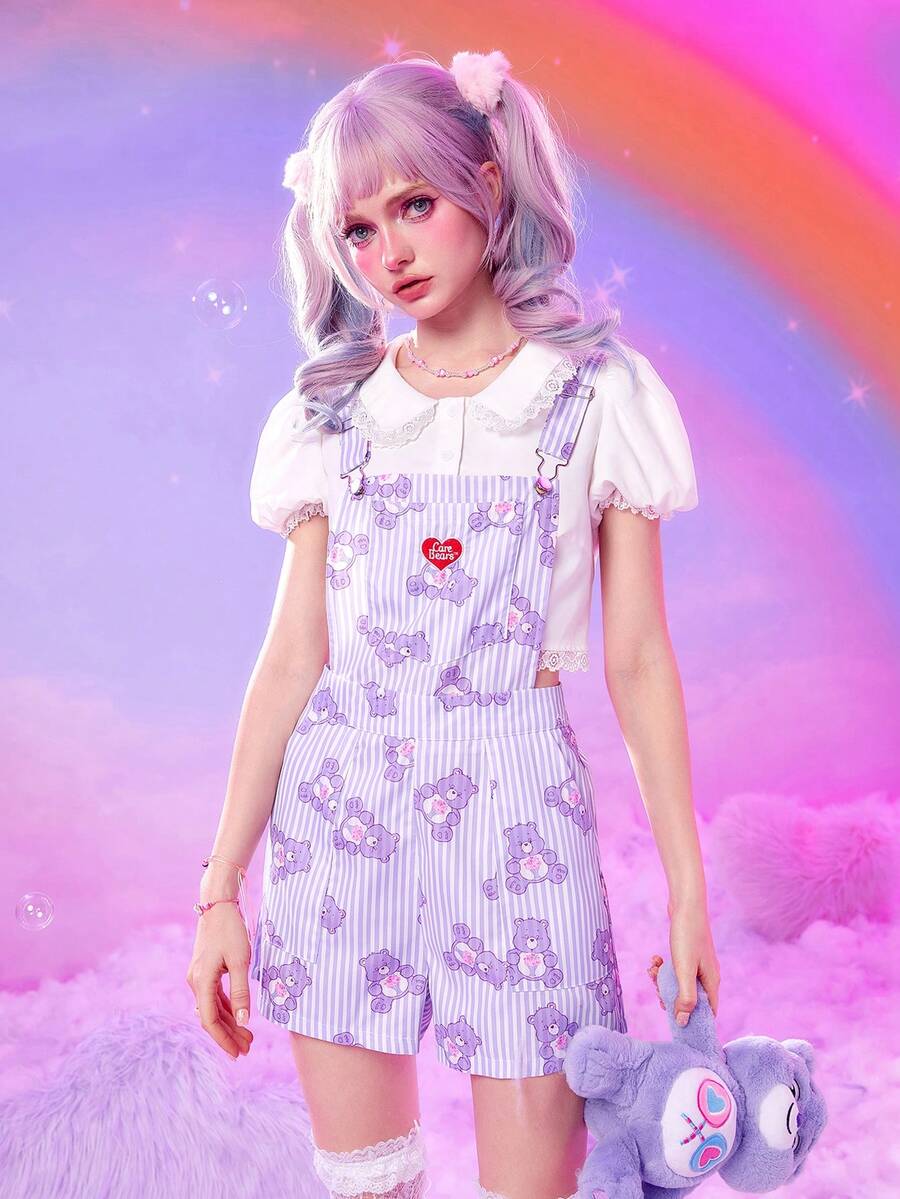ROMWE X Care Bears Gestreiftes Und Cartoon Grafik Overall Jumpsuit