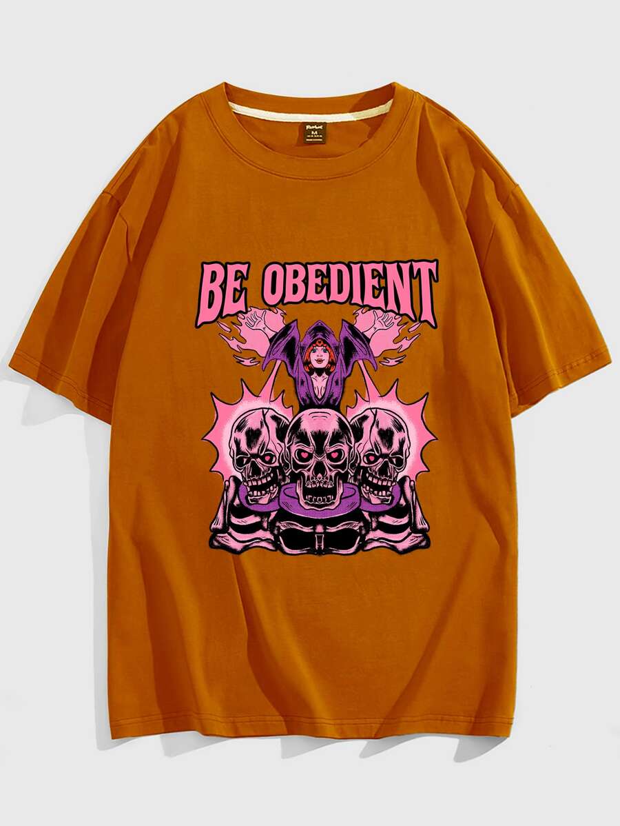 Unlogicstudio Männer T-Shirt mit Buchstabe Schädel Grafik