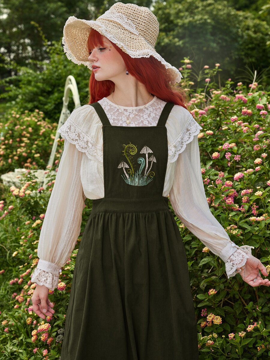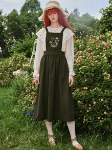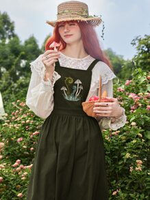 Fairycore Overall Kleid mit Pilz Stickerei ohne Top