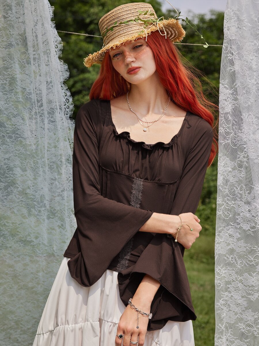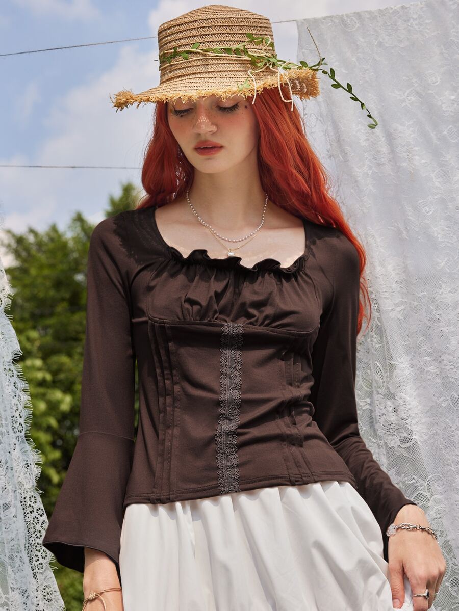 Fairycore T-Shirt mit Rüschen, Rüschenbesatz