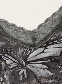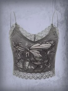 Goth Cami Top mit Schmetterling Muster, Spitzenbesatz