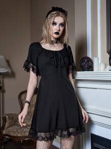 Goth Kleid mit Kontrast Spitzen, Band vorne,