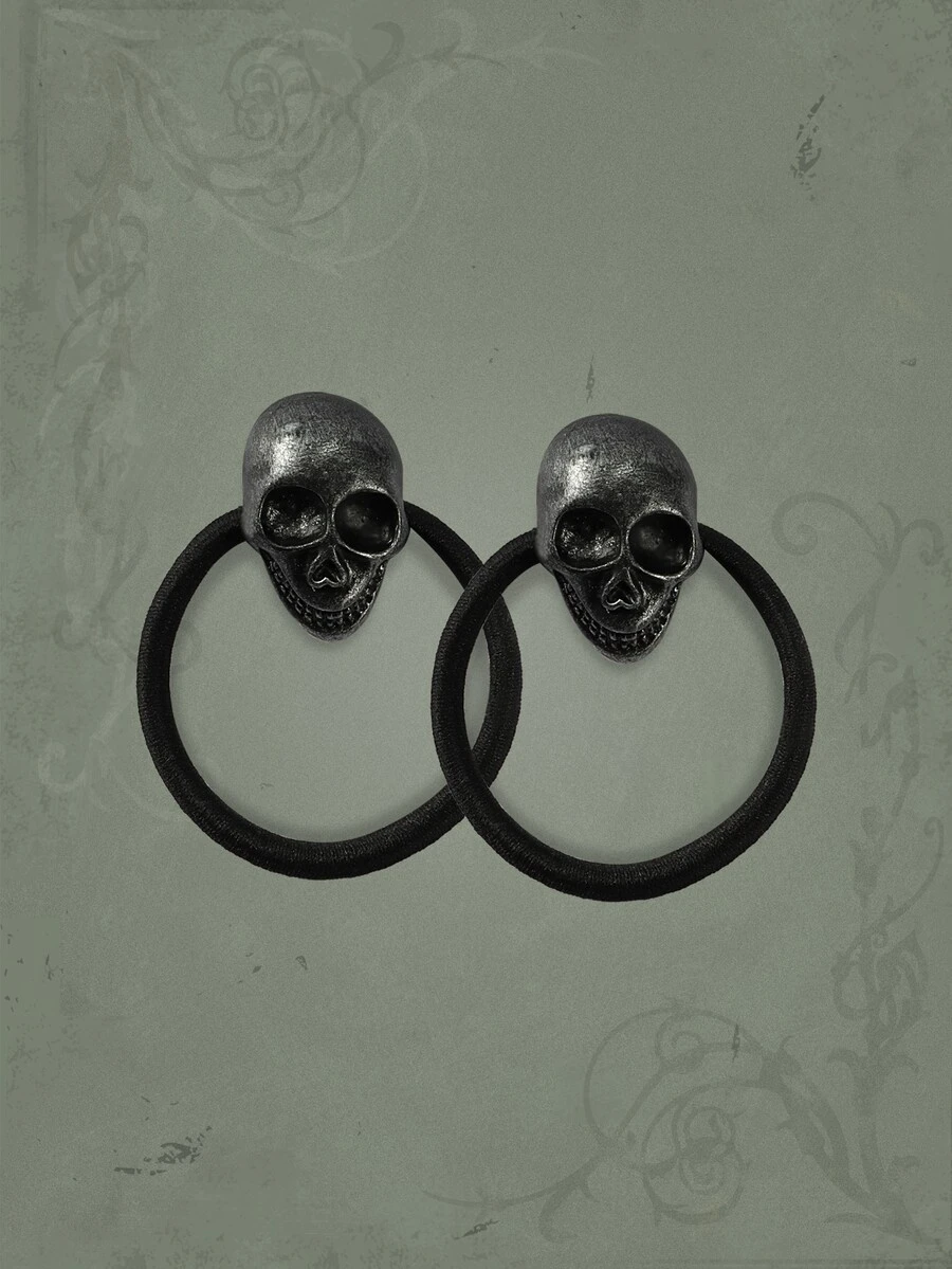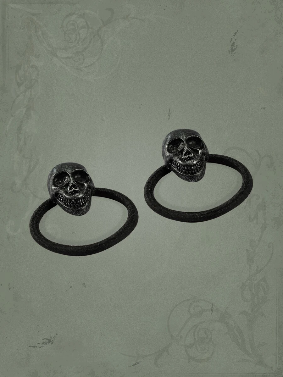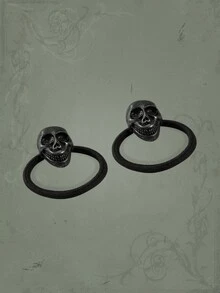Goth Frauen 2 Stücke Haargummi mit Schädel Dekor, Funky Stil