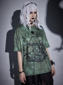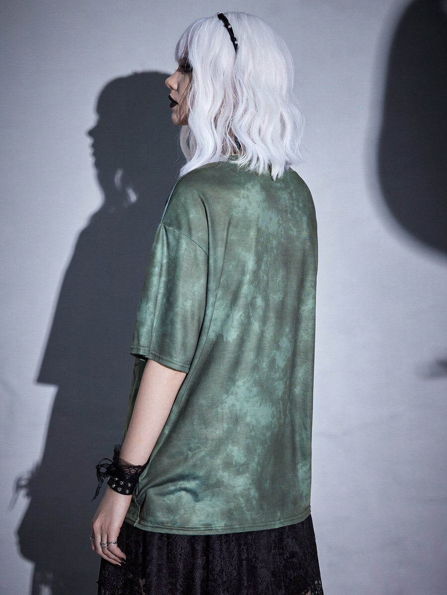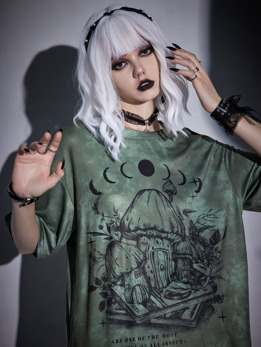 Goth T-Shirt mit Pilz Grafik, Batik