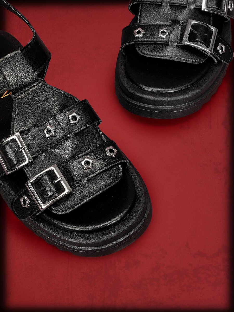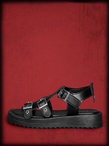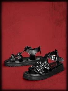 Grunge Punk Sandalen mit Keilabsatz, Öse & Schnalle Detail, Knöchelriemen