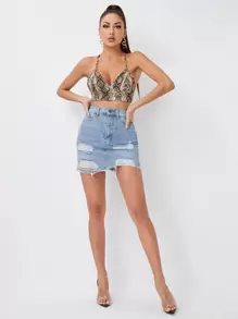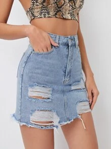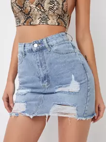 Jeansrock mit ungesäumtem Saum und Riss