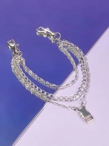 Mehrlagige Halskette mit Schnellverschluss-Schnalle, Anhänger