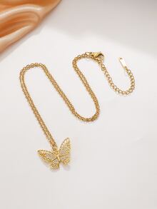 Halskette mit Strass Dekor, Schmetterling Anhänger