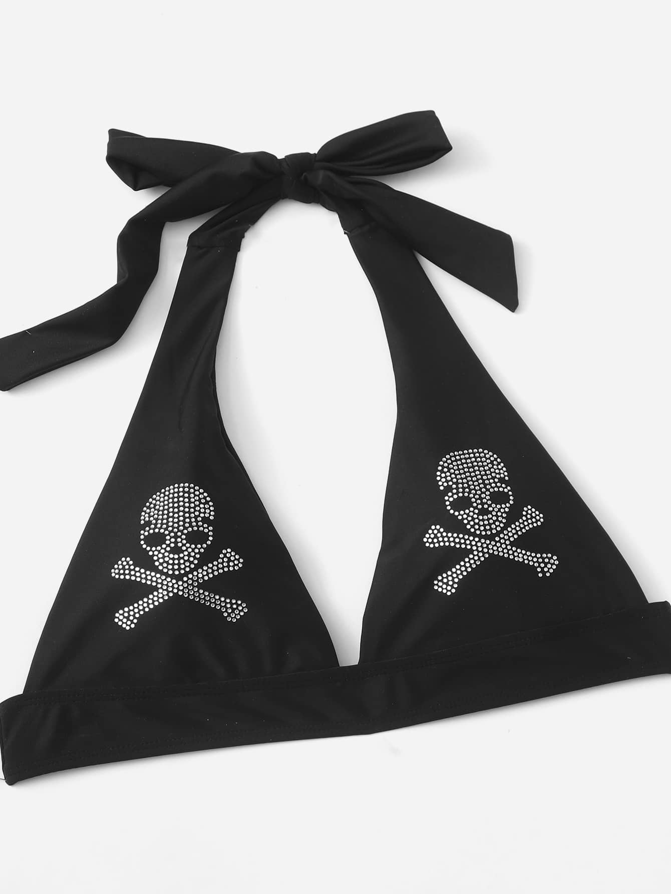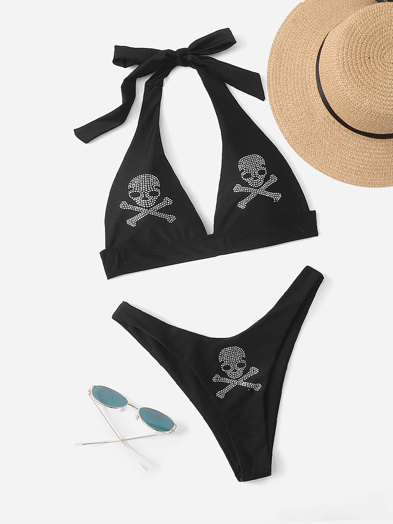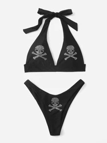 Bikini mit Skelett-Design und Strasssteinen Dekor