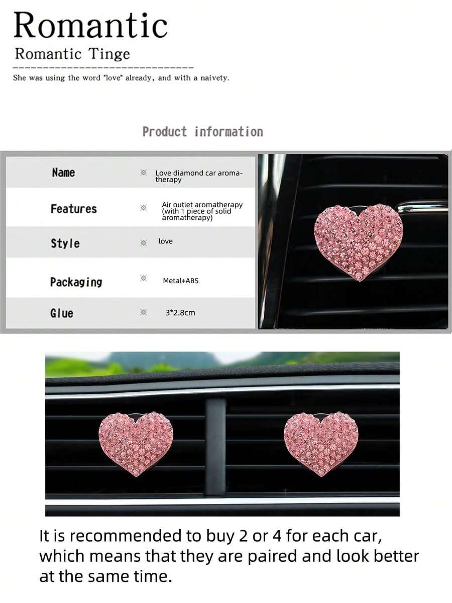 2 Stücke herzförmiger Strass Auto Lufterfrischer Diffusor Lüftungsclip Aromatherapie Zubehör mit Duft oder ätherischem Öl für Auto-Innenraumdekoration