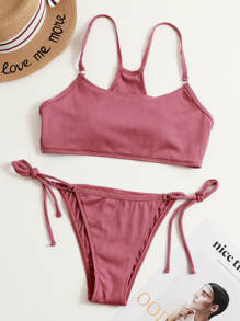 Geripptes Bikini Set mit Binde-Verschluss an der Seite für Sommer Strandurlaub