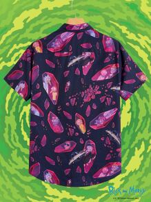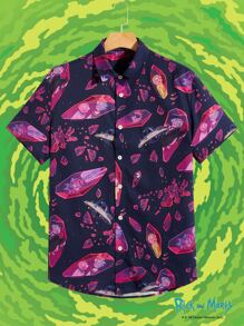 Rick and Morty | ROMWE Männer Shirt mit Cartoon Muster, Knopf vorne