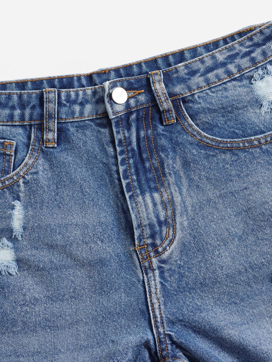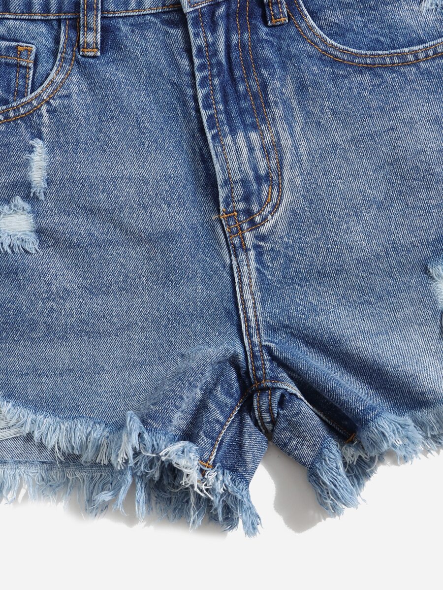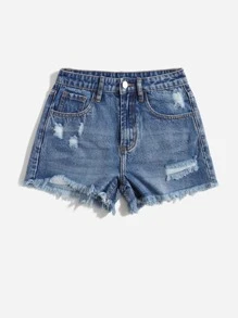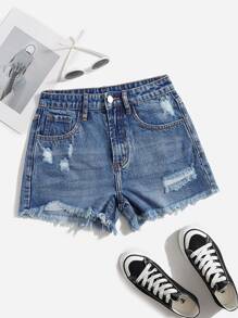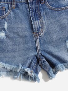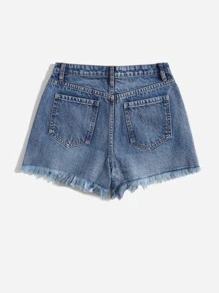 Denim Shorts mit Riss, unbearbeitetem Saum
