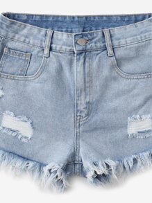 Denim Shorts mit Riss, rohem Saum