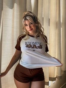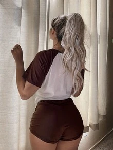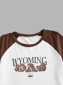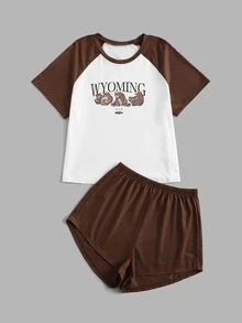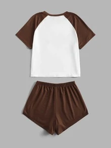 Romwe X Gabiciamp Pyjama Set mit Farbblock, Bär Muster