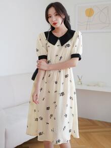 Rose Muster Peter Pan Kragen Smockkleid