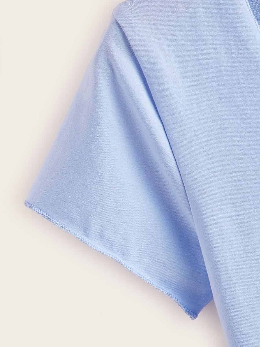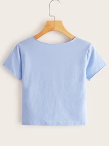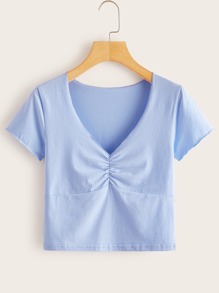 Blaues Crop T-Shirt mit Rüsche
