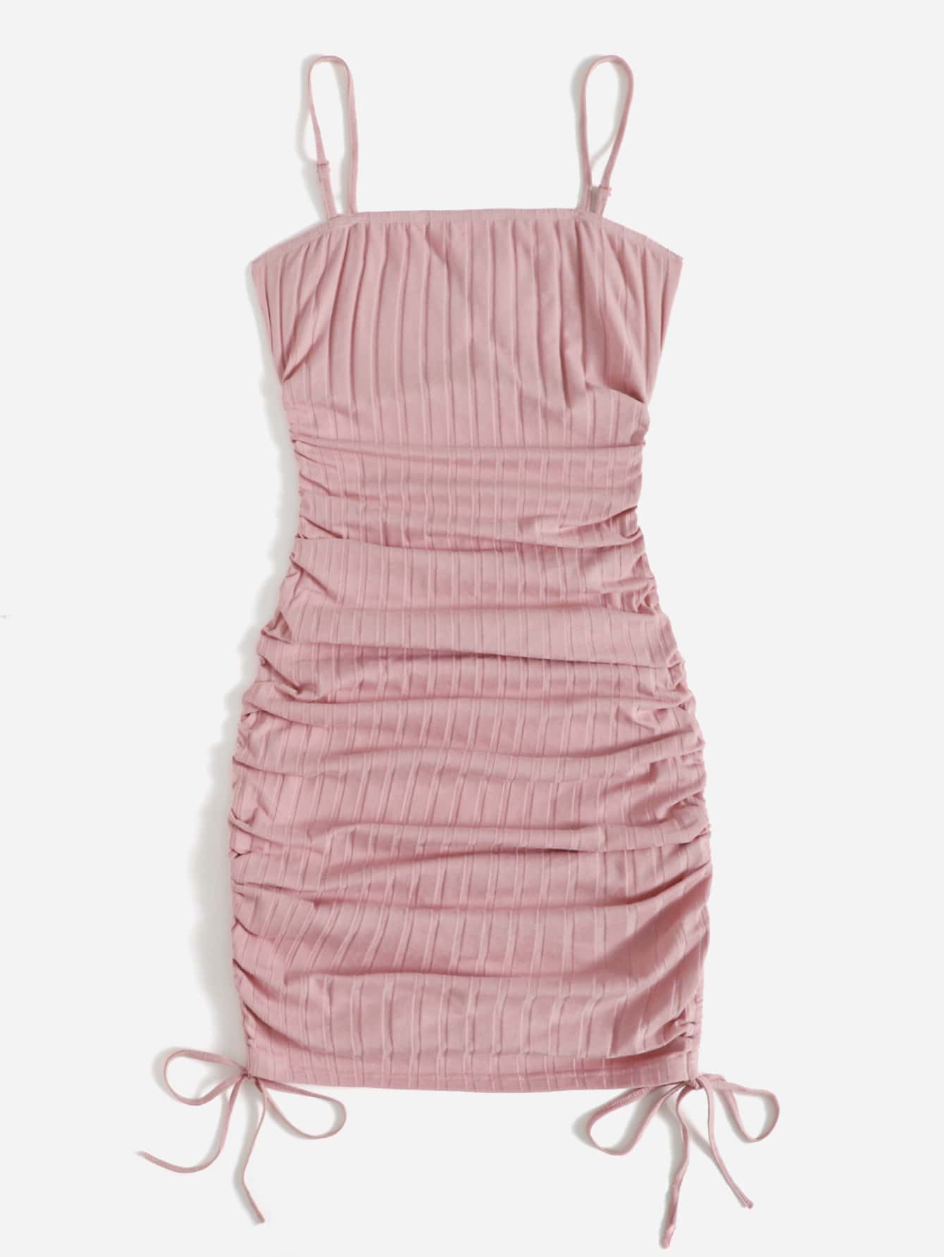 Rippenstrick figurbetontes Kleid mit Rüschen und Kordelzug