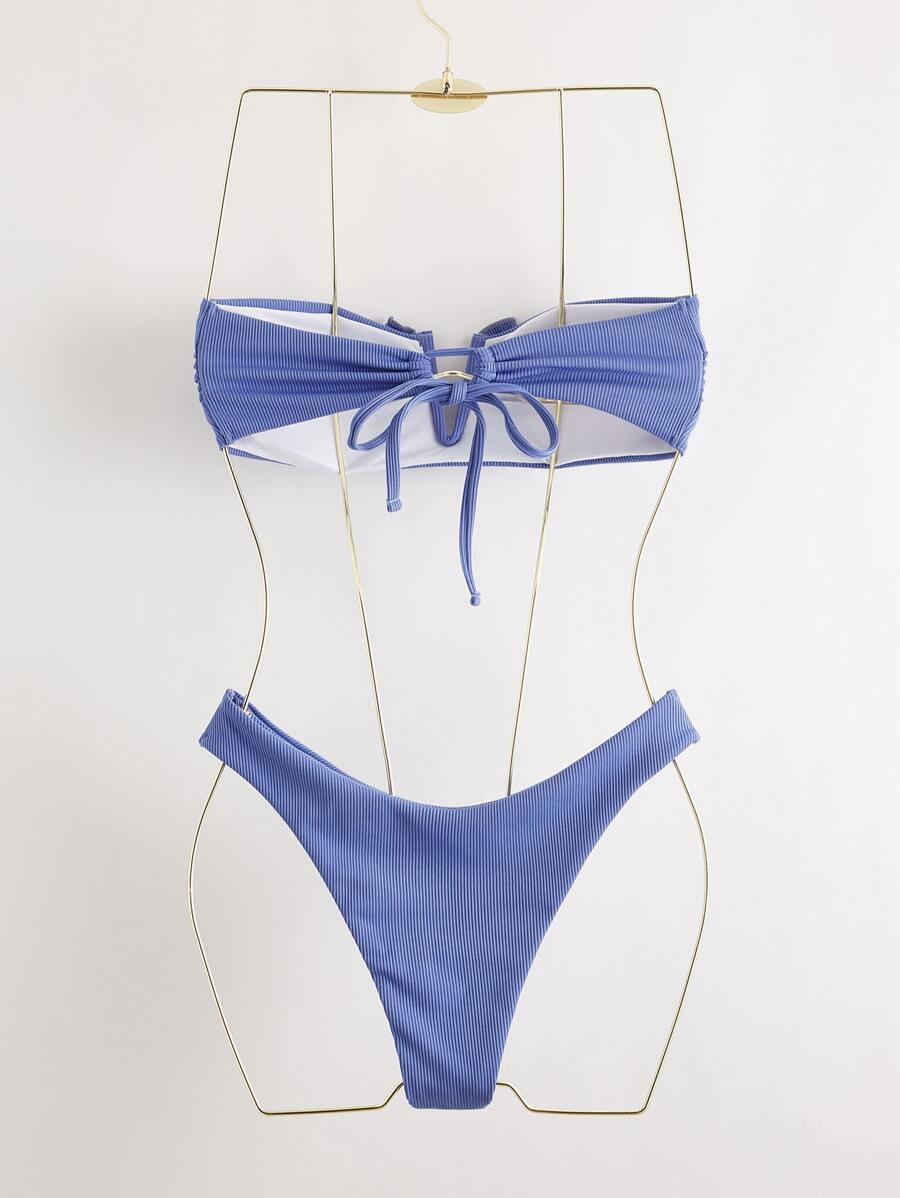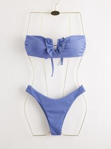 Bikini-Set mit Rüschen, V-Verkabelung und Bandeau-Oberteil